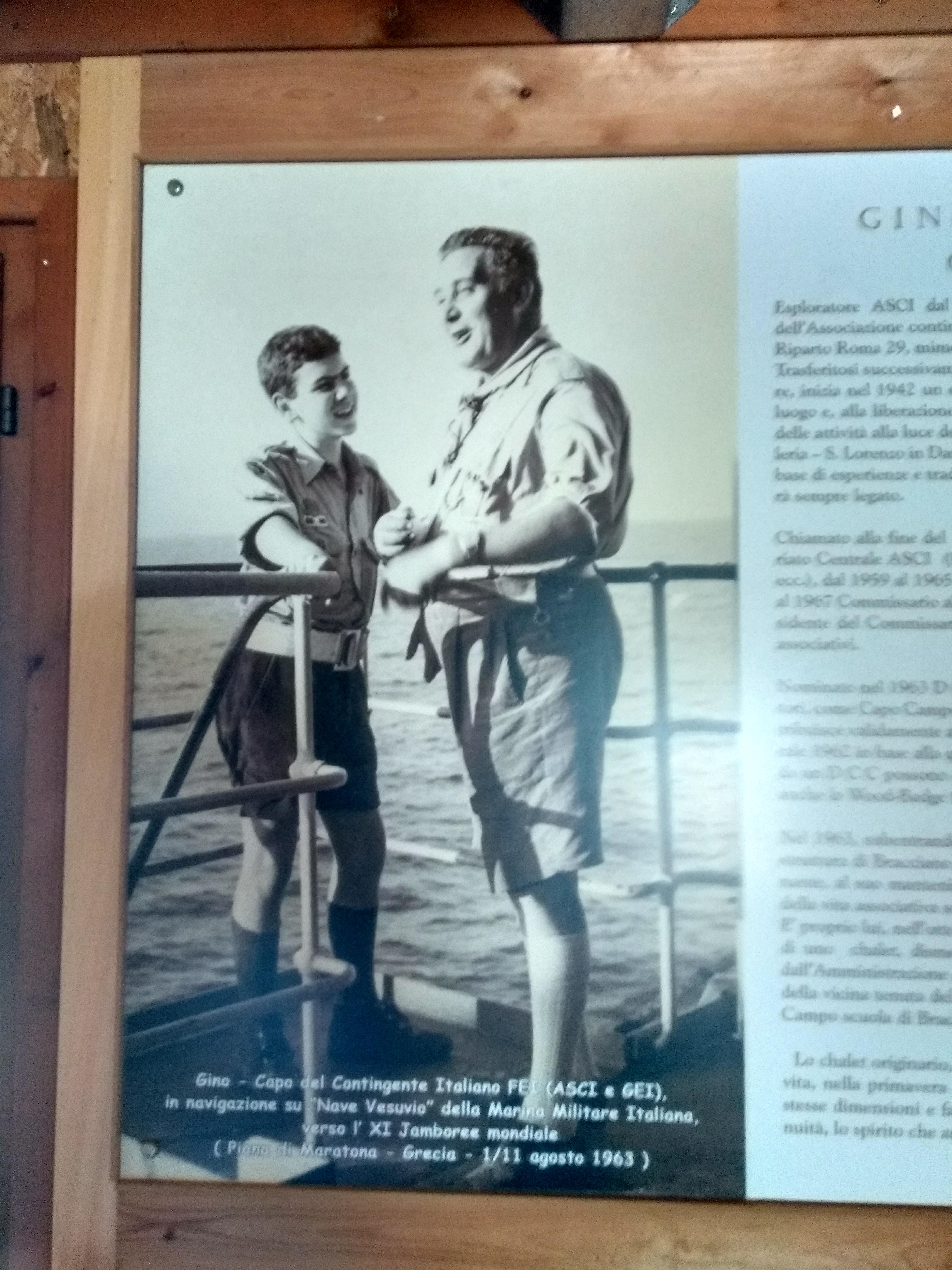 Non sono sicuramente il primo a ricercare questa storia. Dei pezzi molto importante già sono ben conosciute. Per me, in fondo, il punto di partenze erano diversi elementi di racconto sentito, ed un pannello storico (qui nella foto) su Gino Armeni nello chalet alla base di Bracciano. Da lì, è partita la ricerca, un paio di post miei su Facebook, e qualche contatto da parte di capi scout con indizi, suggerimenti … e materiale. Tra i primi all’appello l’AGESCI Roma 121, fondati dallo stesso Gino Armeni, e un paio di pubblicazioni molto utile sulla storia del gruppo e sullo stesso Armeni.