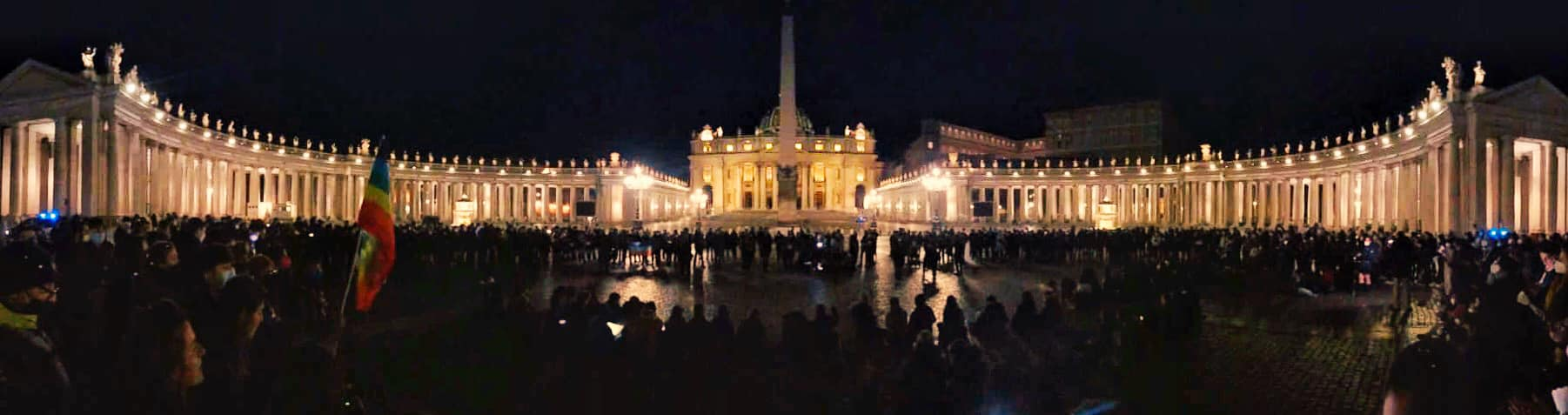 Abbracciati dal collonato di S. Pietro, pregando per la pace in Ucraina. Foto: AGESCI Lazio
