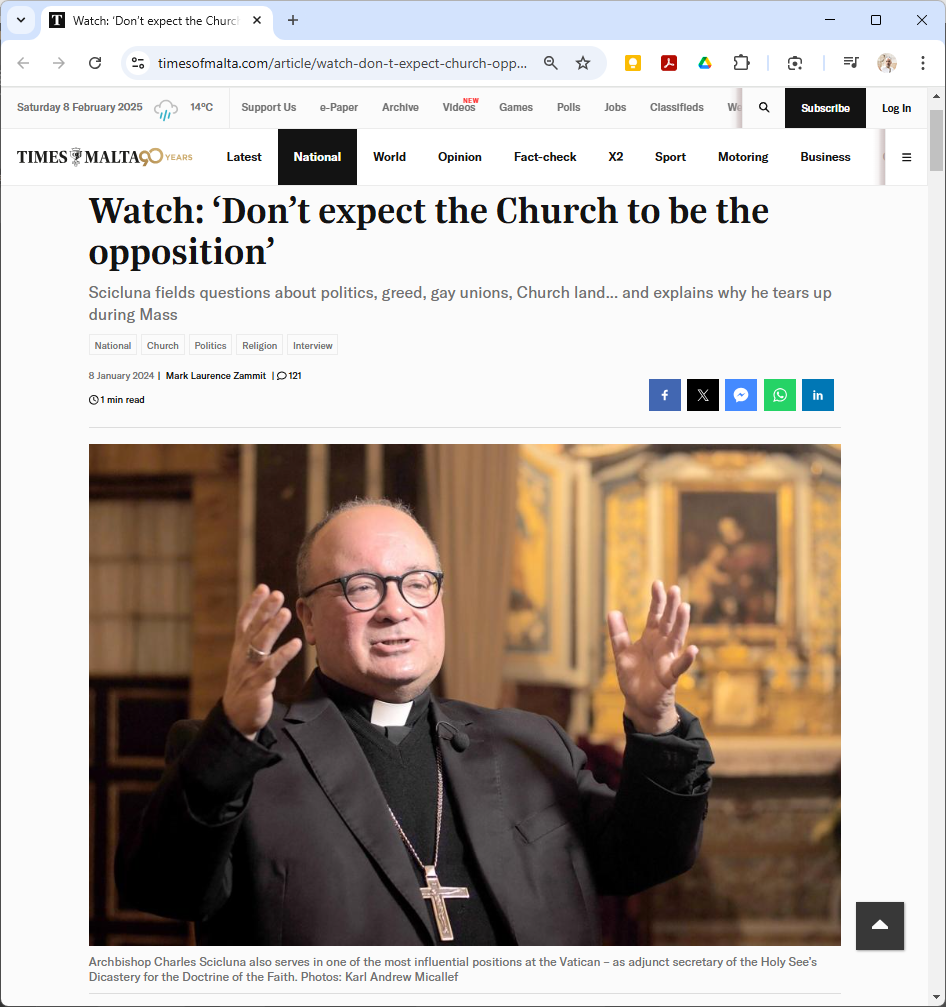 Archbishop Scicluna (archbishop of Malta, but also Adjunct Secretary to the DDF) gave a wide range interview on Times of Malta a few days back (and kudos to Mark Laurence Zammit). Well worth listening to — and I must say that the English subtitles, while quite correct, find it hard to do justice to the original Maltese … which I find more down-to-earth, more direct, and with a good dose of humour.