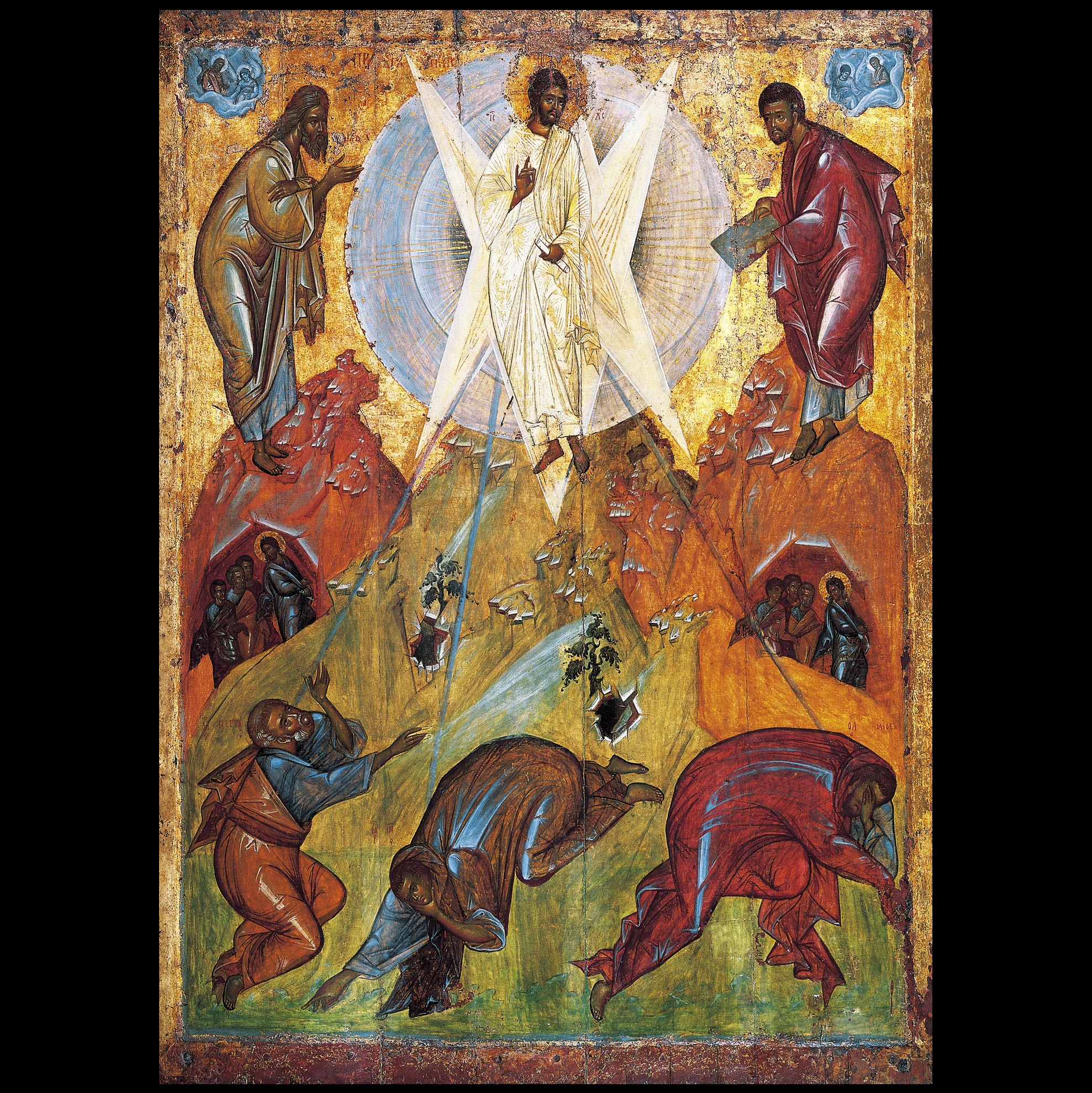 Come avrete notato, questa lettura tende a vedere questa scena come il quadro centrale di un trittico. Nella prima scena, il Battesimo, Gesù pregando, ascolta la voce del Padre che lo conferma “Tu sei mio Figlio, l’amato!” che offre l’inizio alla missione di Gesù. Il secondo quadro, qui, sul monte dove, pregando Gesù insieme con i tre apostoli, viene confermato, e proclamato ai tre “Questi è il Figlio mio, l’eletto; ascoltatelo!” Il terzo, al Getsemani, Gesù sarà solo con Pietro, Giacomo e Giovanni, pregando. Nella versione marciana [vedi qui], Gesù è profondamente solo, non si sente la voce del Padre. Ma Gesù rimane fedele alla propria missione, facendo memoria delle conferme del Padre. I tre apostoli, invece, scappano.